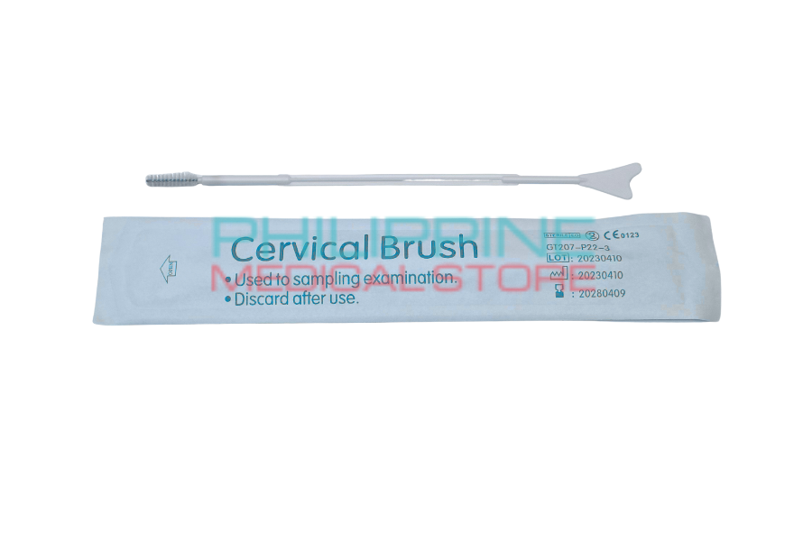 Cervical cyto brush designed for gynecological sampling. The fishtail-shaped soft nylon bristles ensure effective cell collection while minimizing patient discomfort. Disposable and sterile, suitable for Pap smear and cytological examinations.