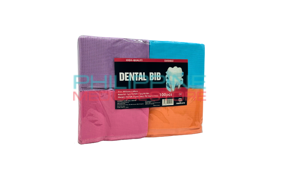 Disposable dental bib designed to provide effective protection during dental procedures. Made with absorbent tissue and a waterproof polyethylene backing to prevent fluid penetration. Lightweight, hygienic, and convenient for single-use applications in clinics and hospitals.