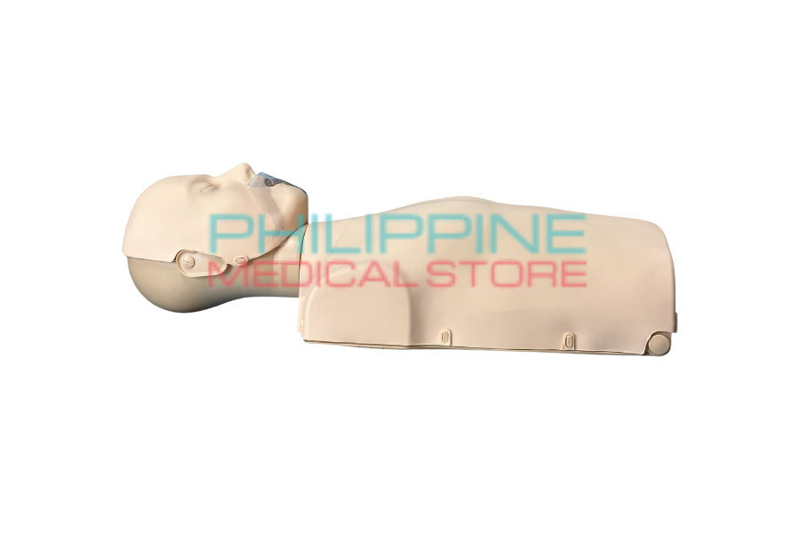Durable and realistic half-body CPR mannequin designed for effective training in cardiopulmonary resuscitation. Provides accurate anatomical landmarks, chest compression feedback, and ventilation practice for medical and emergency training purposes.