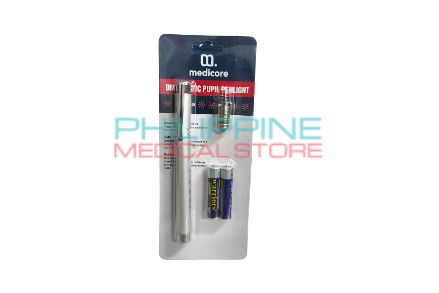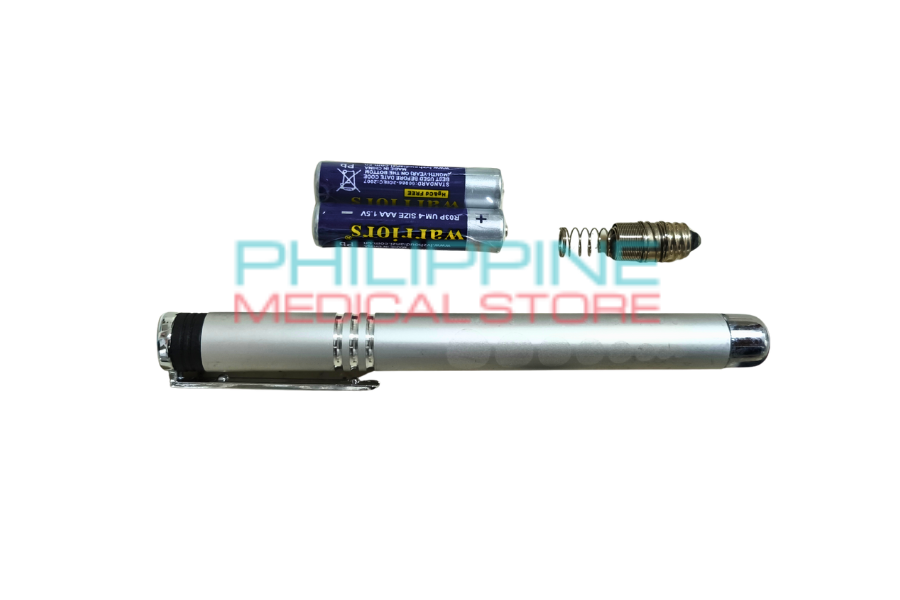 A durable and reusable chrome penlight with integrated pupil gauge, designed for medical professionals to perform quick and accurate eye examinations. Compact, lightweight, and easy to carry in a pocket or medical kit.