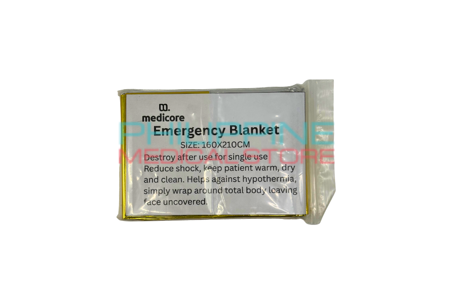 Lightweight, compact, and waterproof emergency blanket designed to retain or reflect body heat in critical situations. Dual-sided design (gold and silver) for versatile use in first aid, outdoor survival, and disaster preparedness.